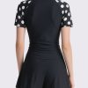 This classic swimsuit top is designed for comfort and style. The streamlined short sleeves and fitted silhouette deliver a flattering look for beach, pool, or athletic activities.