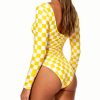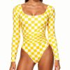 Women's Square Neck Checkerboard Trendy Unique Long-Sleeve One-Piece Swimsuit